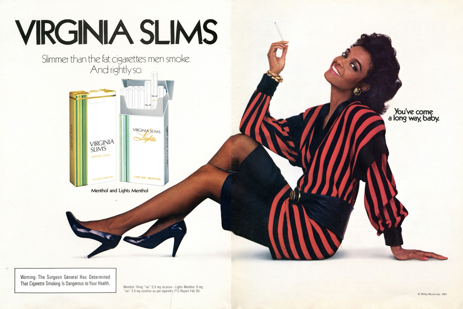 Those guys turned out to be Philip Morris brand manager John Landry, along with Leo Burnett Creative Director Hal Weinstein and ad exec Don Tennant. Landry saw the brilliance of the Burnett team and wound up dominating Tobacco Mountain for decades. A New York Times article on Virginia Slim titled “WHY THEY STRETCHED THE SLIMS” is an amazing look inside the world of cigarette advertising.