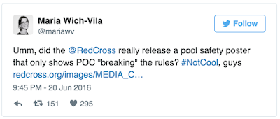 I’m waiting by the phone hoping Gail J. McGovern, President and Chief Executive Officer of the American Red Cross, rings me back so we can discuss their outreach advertising. Their swimming pool safety poster channeled their inner Trump nearly alienating African-Americans across the United States. They picked a helluva a spot to showcase who’s cool and who’s not cool. I mean swimming pools in this country long been the hub of racism—take a read of the Washington Post’s article detailing why “America’s swimming pools have a long, sad, racist history.”