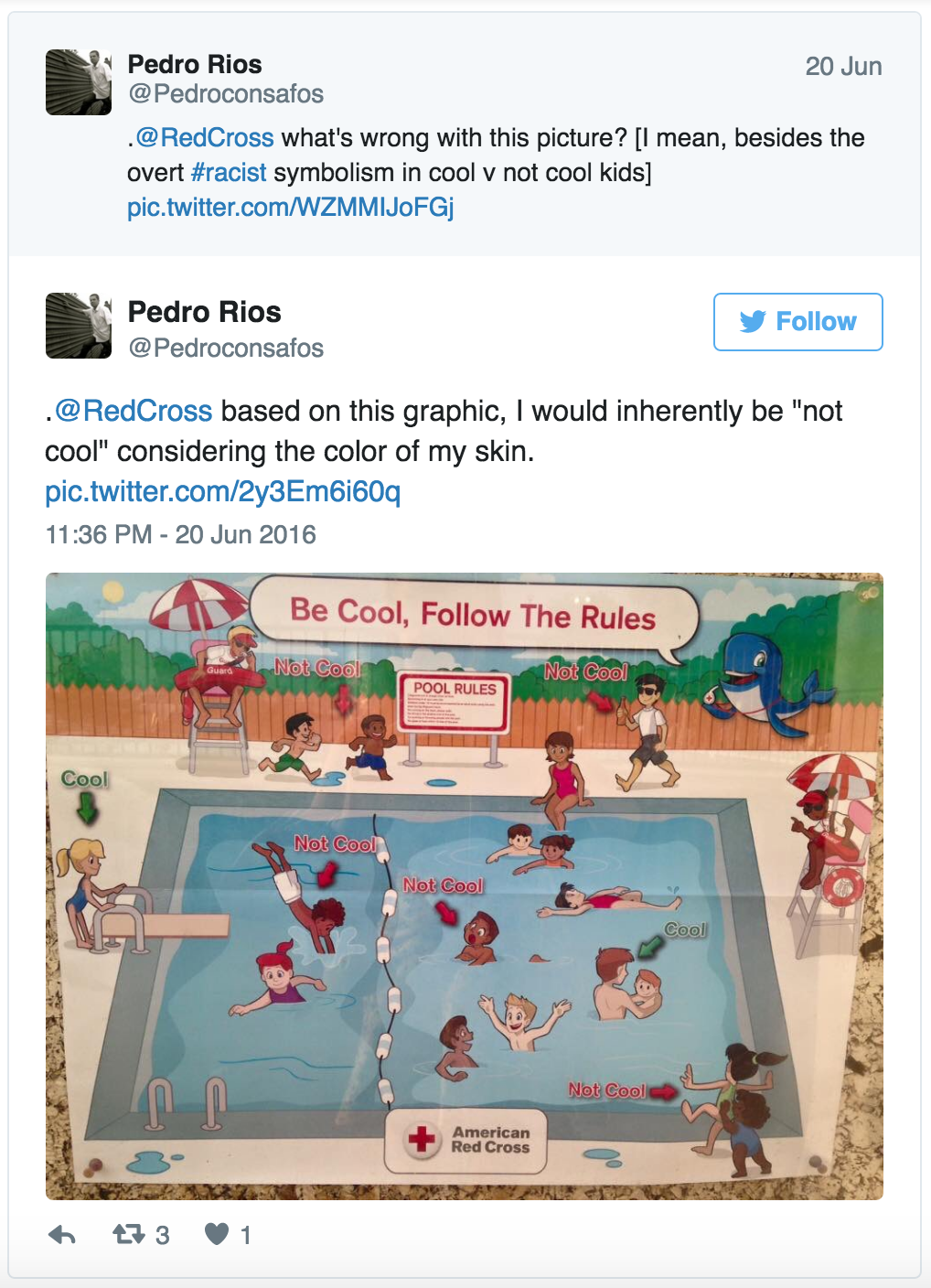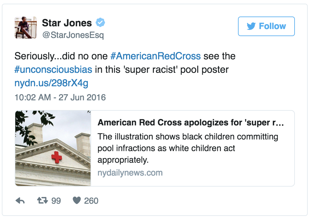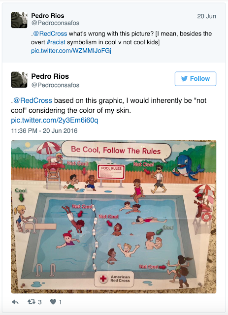 I’m waiting by the phone hoping Gail J. McGovern, President and Chief Executive Officer of the American Red Cross, rings me back so we can discuss their outreach advertising. Their swimming pool safety poster channeled their inner Trump nearly alienating African-Americans across the United States. They picked a helluva a spot to showcase who’s cool and who’s not cool. I mean swimming pools in this country long been the hub of racism—take a read of the Washington Post’s article detailing why “America’s swimming pools have a long, sad, racist history.”