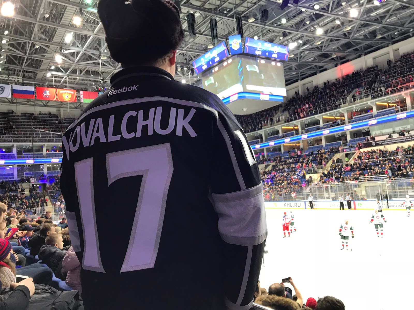 | Repping the great Ilya Kolvachuk at a KHL game will earn you mad props. © Michael Lloyd |