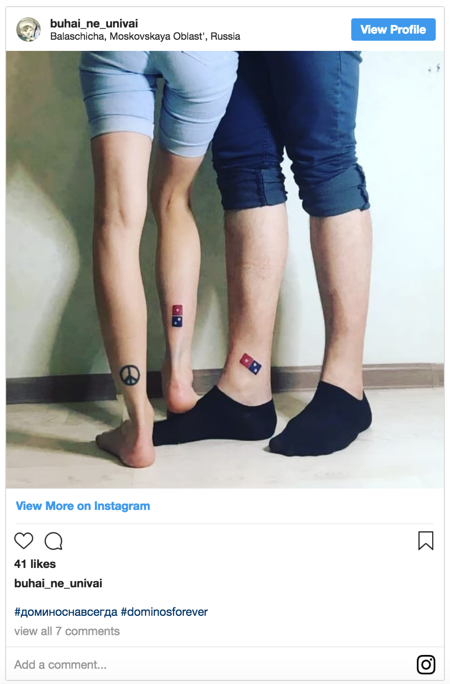 In Russia, Domino’s launched “Dominos Forever,” a campaign offering 100 free pizzas a year for 100 years to customers who inked their bodies with the brand’s logo