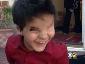 Born with a condition doctors now believe to be Frasier’s Syndrome, he has been forced to learn how to deal with having webbed feet and hands, one eye completely covered by skin, and the other eye incapable of closing. He also has severe birth defects; including one on his skull that his mother has always covered by the way his hair was cut.