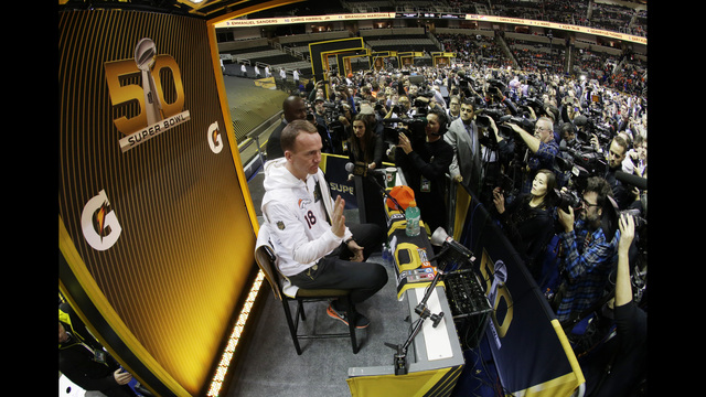 Super Bowl 50 officially kicked off with Media Day Super Bowl Opening Night and there’s a lot going on in Northern California. I mean this could be Peyton Manning’s last rodeo, players are wearing wrestling masks and the game will be on in Hungary! The SAP Center, which is usually home to the chokers known as the San Jose Sharks, is now home to the “Golden Game’s” opening night.