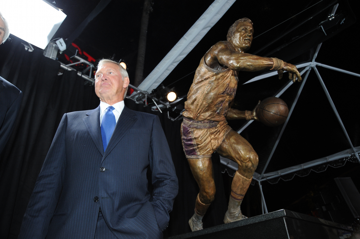 | Marge Hearn with her late husband’s statue…Chick Hearn / Los Angeles Lakers |
