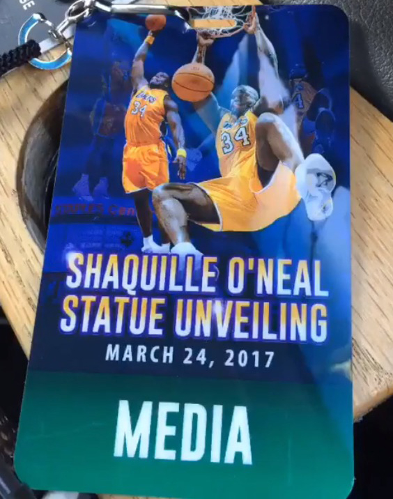 Today I’m back at Staples Center—media pass in hand—to cover the unveiling of former Lakers superstar Shaquille O’Neal. If you’re not a basketball fan, you still might know him as the player with the most noms de plume in the history of sports: