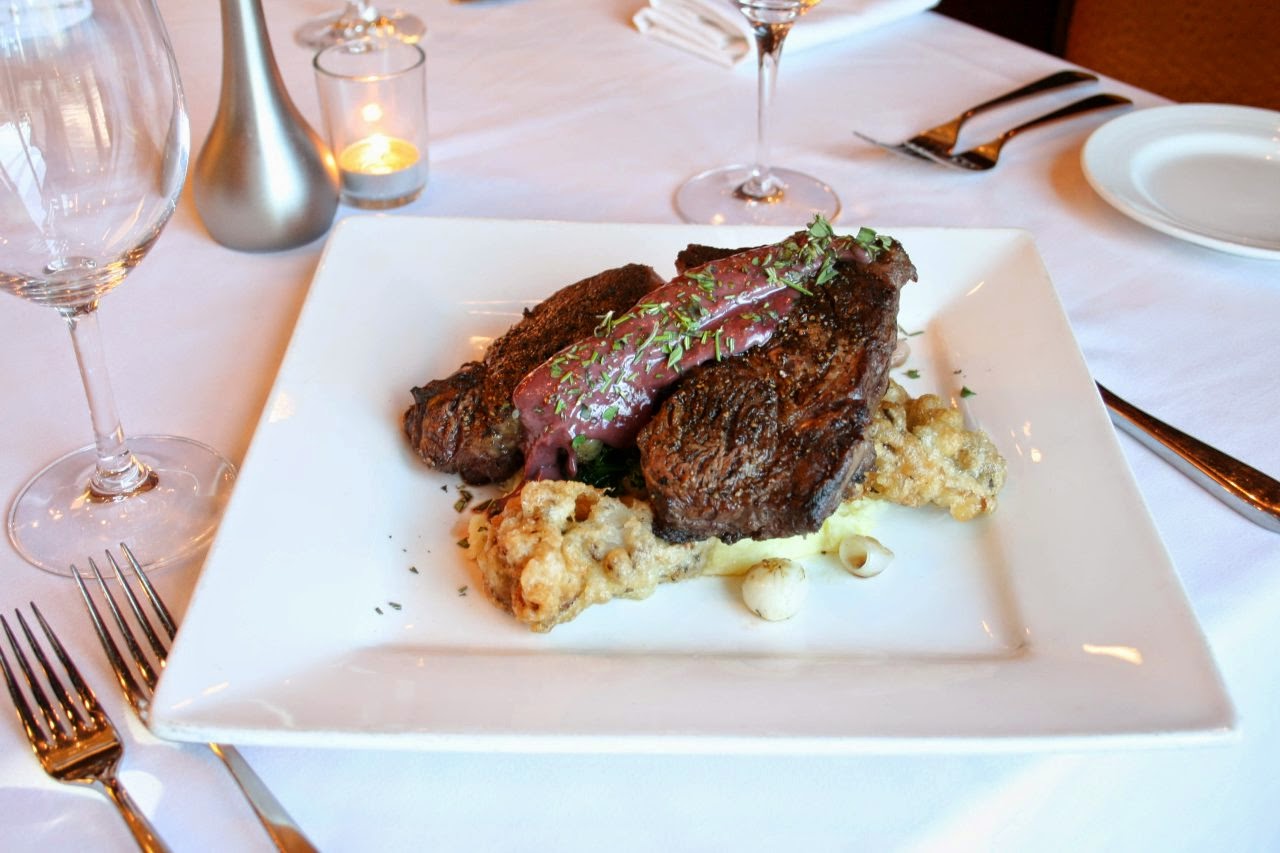 The salmon was a cauliflower potato tortilla Española, champagne leeks, mille erbe and real saffron that was fresher than any Kodiak bear could catch and paw deliver to you in the wild. And the rib eye? Well the rib eye? You mean the rib eye with a mustard demi, fried Yukon gold potatoes, sous vide abalone mushrooms, kale and roasted pearl onions? The rib eye was the best piece of meat I have ever tasted and maybe, will ever taste. I am forever ruined to the 100,000 places all over the world that offers rib eye on their menu.