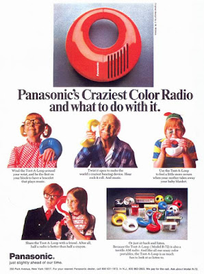 Panasonic was the trail blazer of the gadget mobility path. Making electronics smaller and smaller was a big part of the second-half of the twentieth century. The the Toot-A-Loop could transform from a loop that (kind of) fit around your one’s wrist into a shofar-like horn contraption, and yes, it was also a radio.