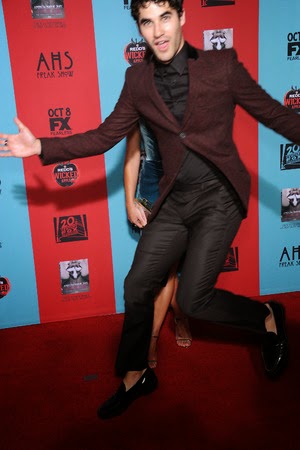 At the Los Angeles premiere of American Horror Story. The red carpet was buzzing with the normal magpies (aka paparazzi) imploring celebs to look their way and pose a certain way. Usually each quasi-star, celeb or show exec takes their 90-second allotment, preening and twirling so the print folks can get their snaps off and then they move on to the television media for sound bite moments.