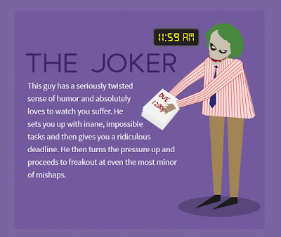 Created by TaskWorld, you may find characters like ‘The Joker’ familiar, a term that describes colleagues or superiors that loves to watch you suffer by setting you up with impossible tasks on a tight deadline.